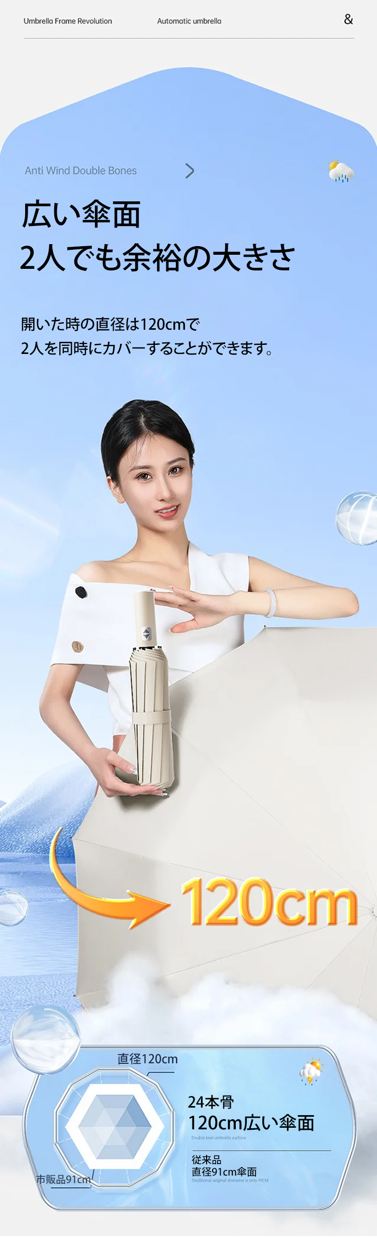 24本骨全自動晴雨兼用傘